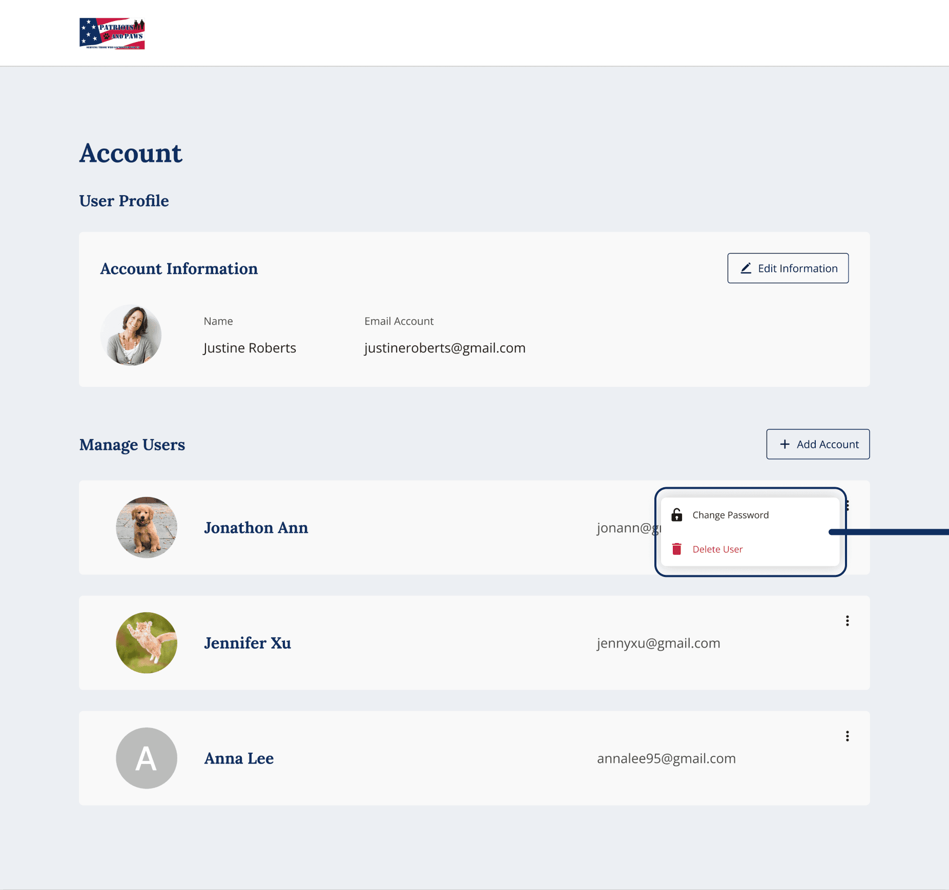 Now that the platform is fully launched and integrated into the Patriots & Paws website, I focused on what I learned and how the product can continue to evolve.