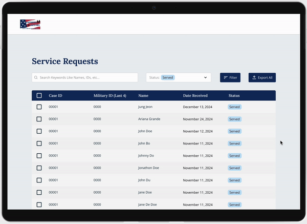 To modernize operations, I led the design of a web application that digitizes the entire lifecycle of a Veteran Service Request:
