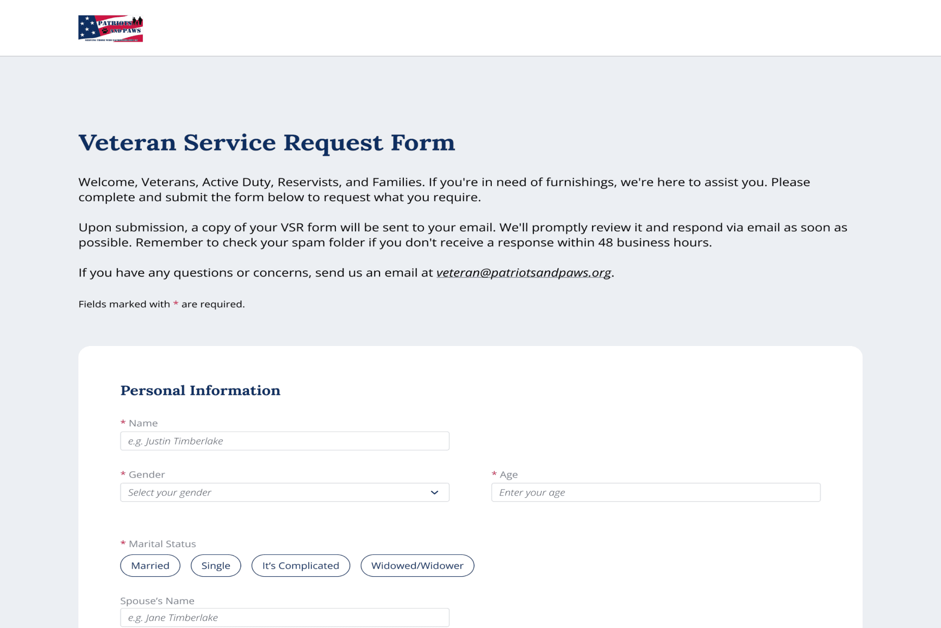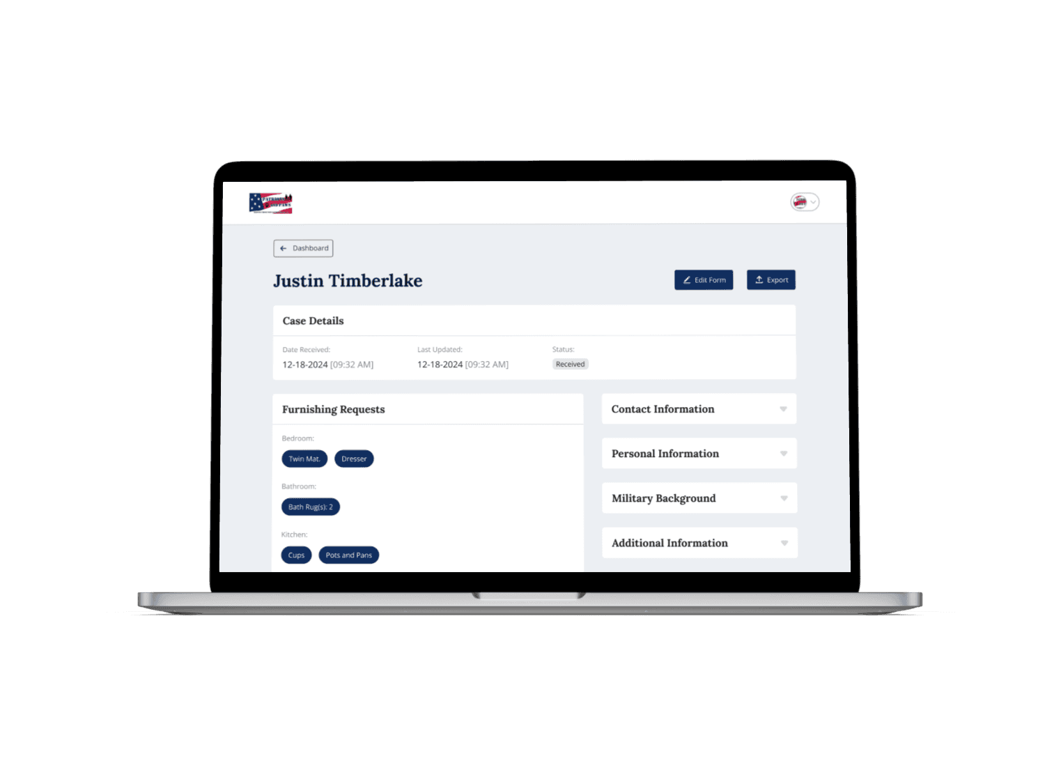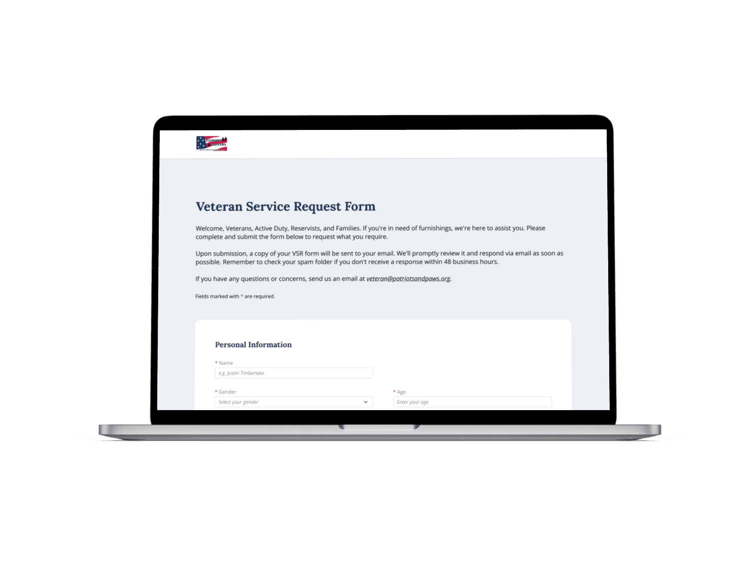 A simplified online form where veterans submit furnishing requests in minutes — no appointments or manual paperwork needed.