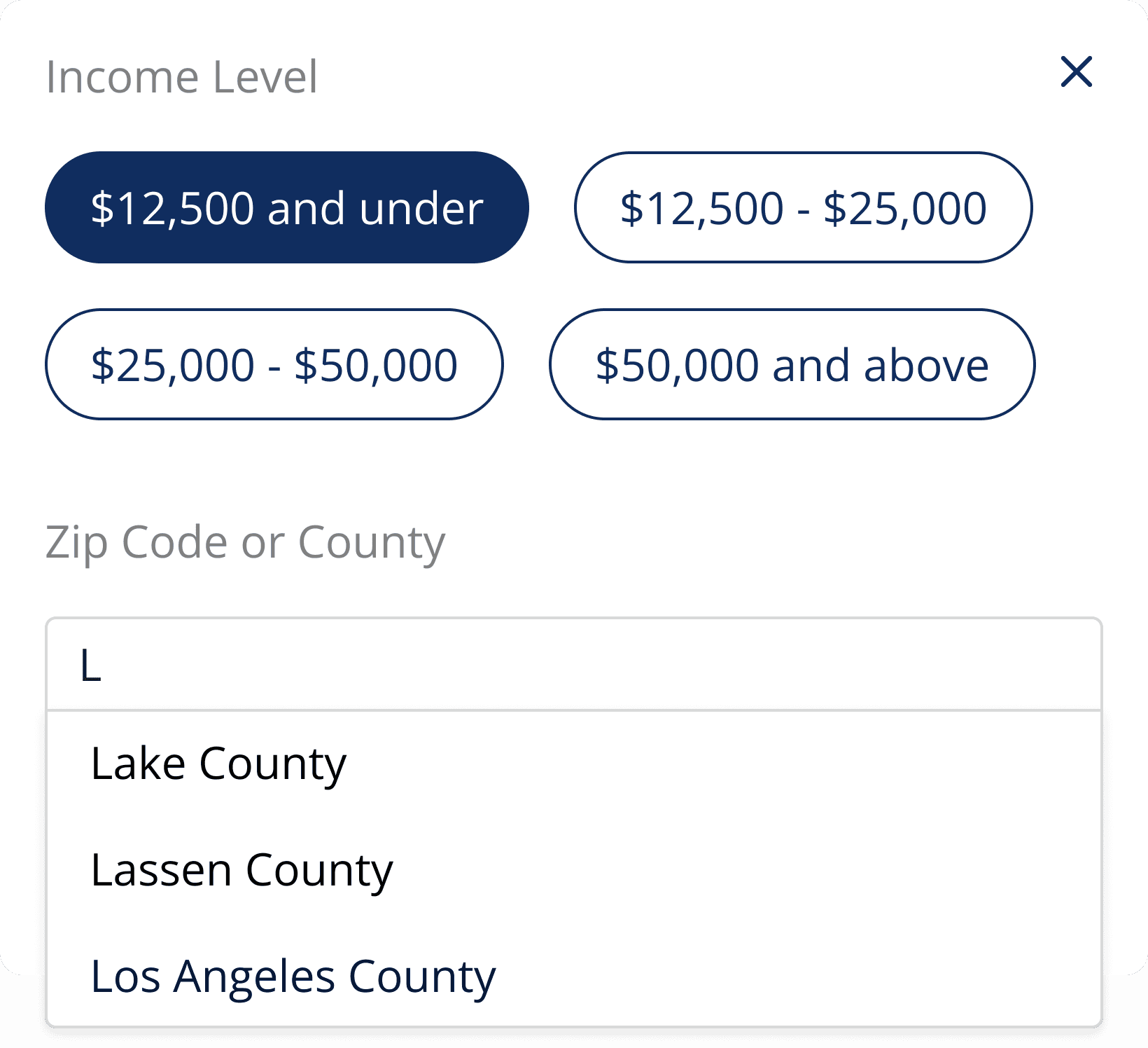New dropdown field for "Zip Code or County"