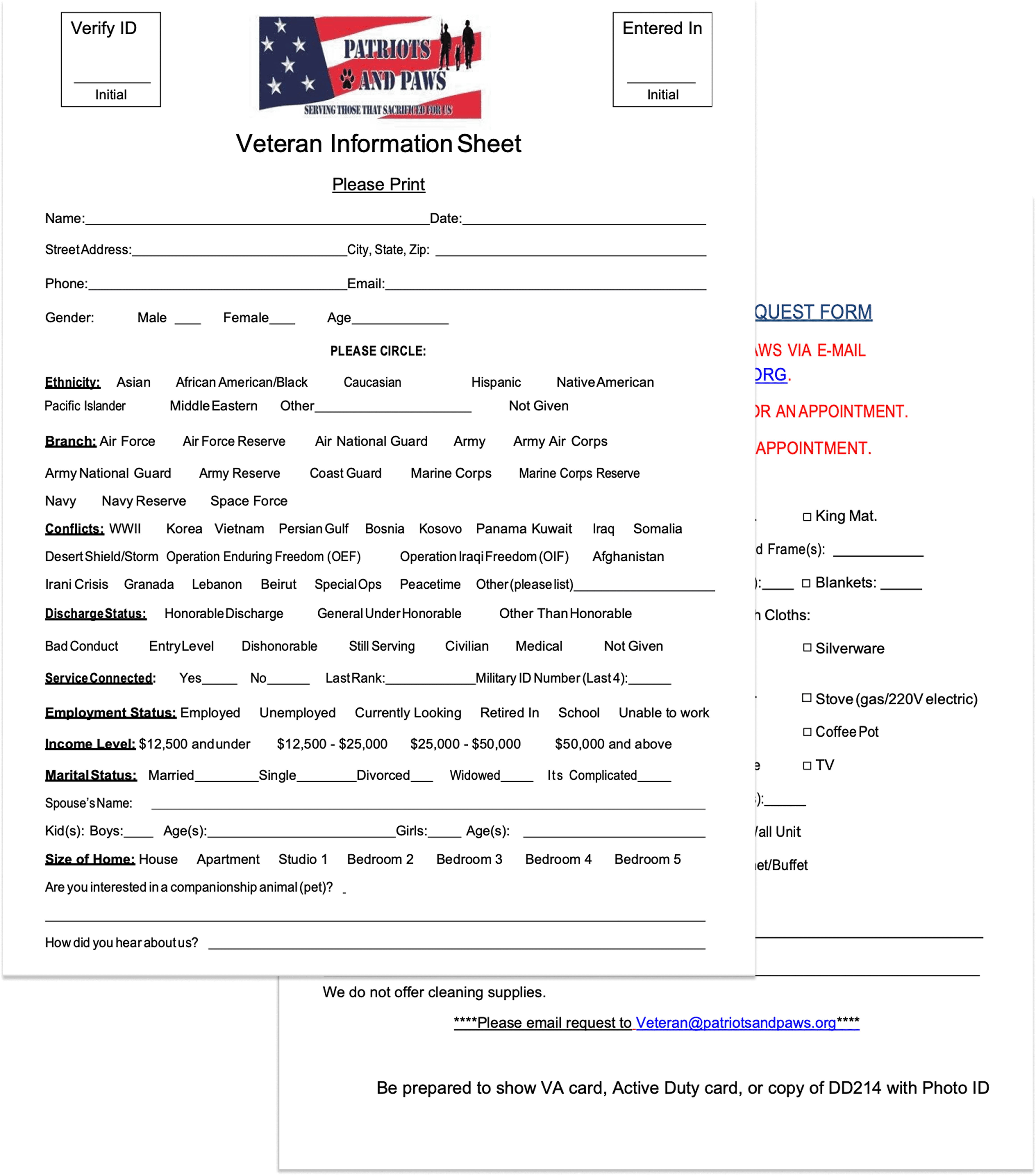 How might we improve the efficiency of the Patriots and Paws system to streamline the submission of forms for veterans and facilitate easier data management for staff, thereby expediting assistance for veterans?