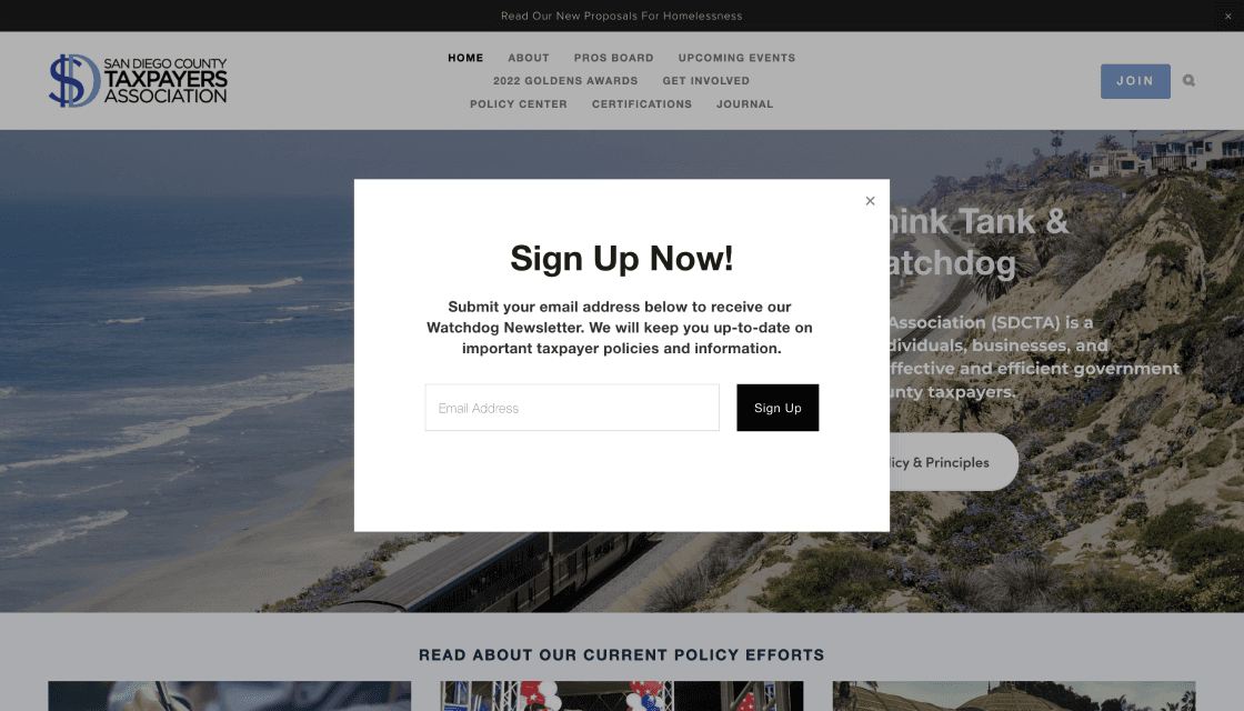 Our client, SDTEF, is a non-profit that serves as both a public policy think tank and a government watchdog group to provide research on economic and quality of life issues affecting taxpayers, supporting the public, civil leaders, and policymakers.